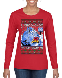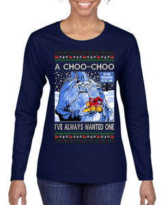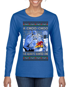 A Choo Choo I've Always Wanted One Winter Warlock Movie Ugly Christmas Sweater Womens Graphic Long Sleeve T-Shirt