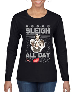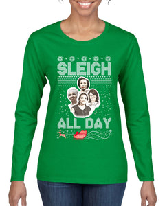AOC The Squad Congresswomen Sleigh All Day Xmas Ugly Christmas Sweater Womens Graphic Long Sleeve T-Shirt