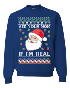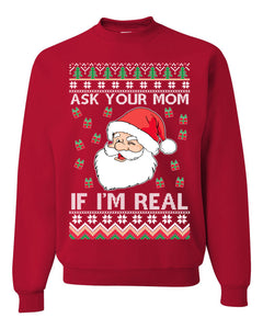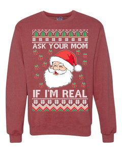 Ask Your Mom If I'm Real Funny Santa Christmas Unisex Crewneck Graphic Sweatshirt