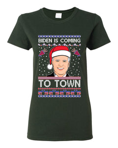 Biden Is Coming To Town Ugly Christmas Sweater Womens Graphic T-Shirt