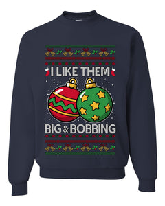 Big and Bobbing, Funny Unisex Ugly Christmas Sweater Crewneck Sweatshirts