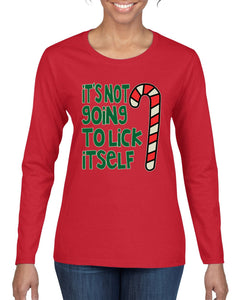 Candy Cane Not Going to Lick Itself Christmas Womens Graphic Long Sleeve T-Shirt