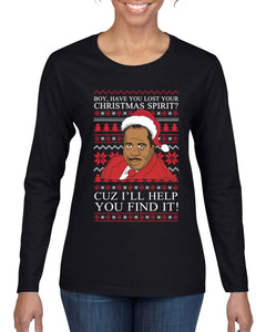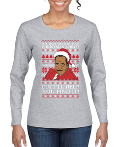 Christmas Spirit I'll Help You Find It Stanley Hudson Ugly Christmas Sweater Womens Graphic Long Sleeve T-Shirt
