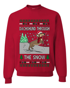 Dachshund Through The Snow, Cute Dog Christmas Sweater, Ugly Christmas Unisex Sweater, Crewneck Sweatshirts