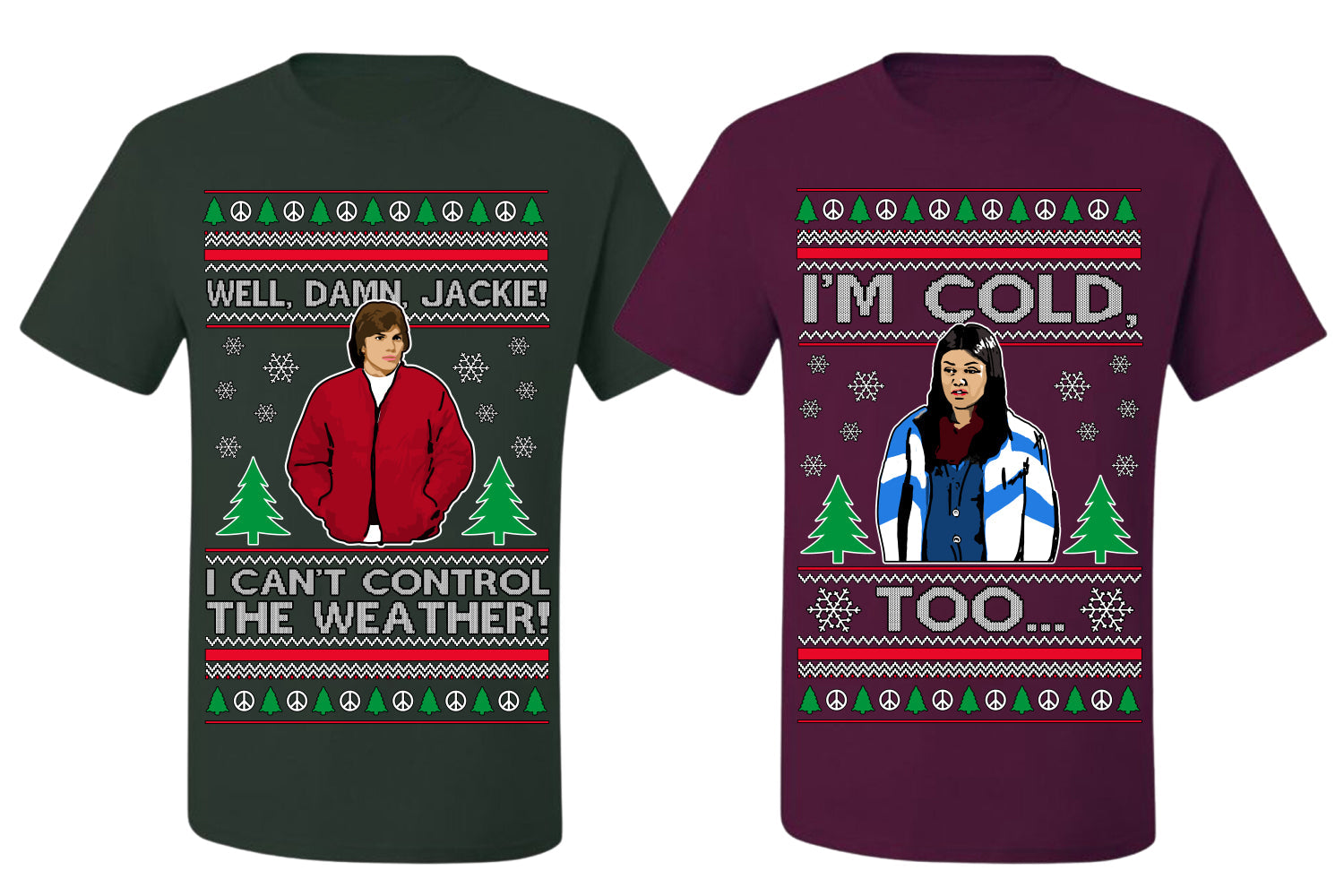 Damn Jackie I Can't Control the Weather, I'm Cold Too Funny Shirt Girlfriend Boyfriend Gift His and Hers Matching Ugly Christmas Couple T-Shirt