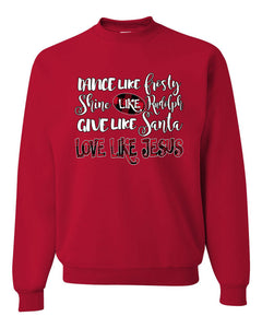 Dance Like, Shine Like Rudolph, Give Like Santa Love Like Jesus, Cute Holiday, Ugly Christmas Sweater, Crewneck Sweatshirts