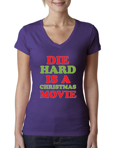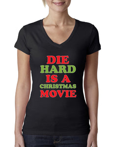 Die Hard is a Christmas Movie Christmas Womens Junior Fit V-Neck Tee