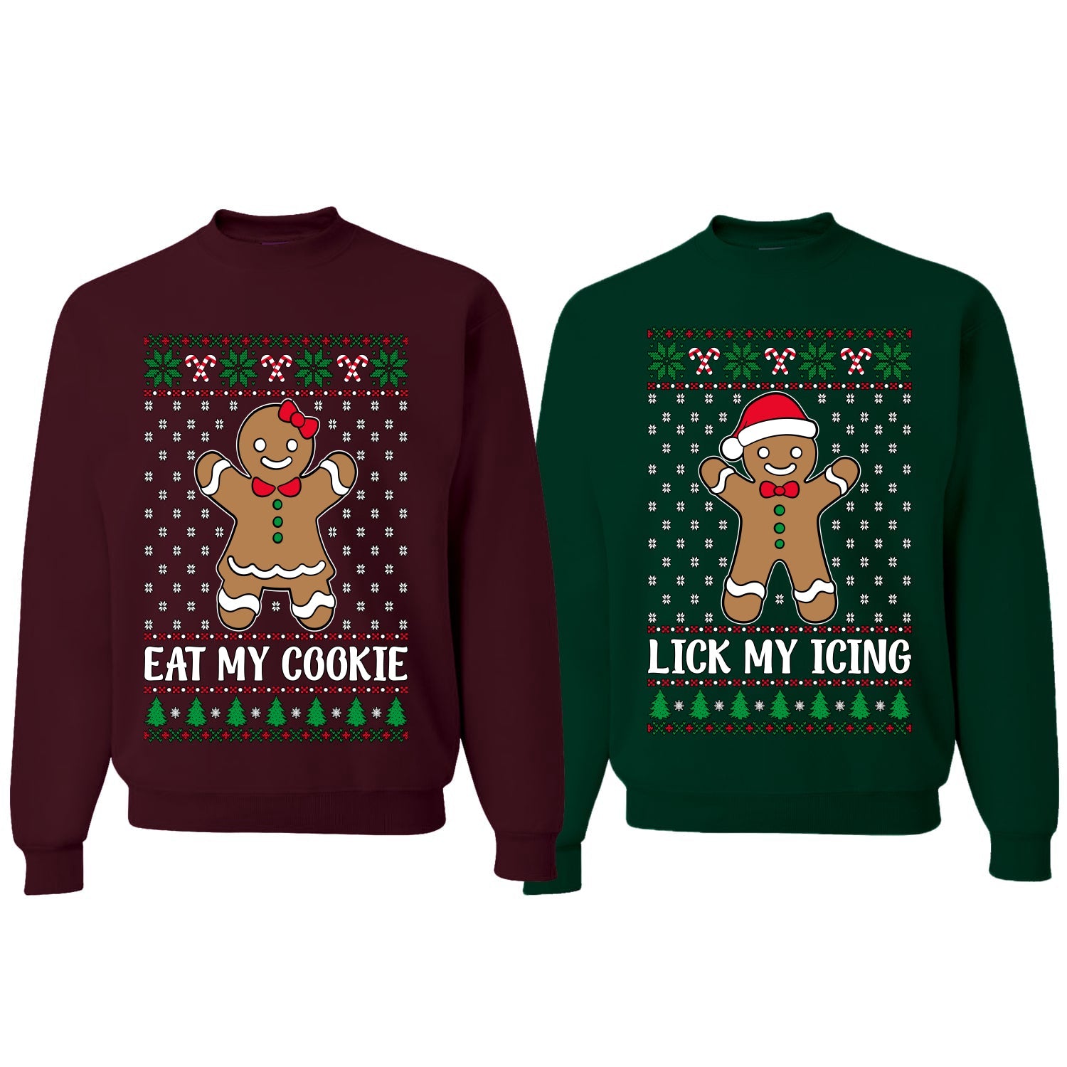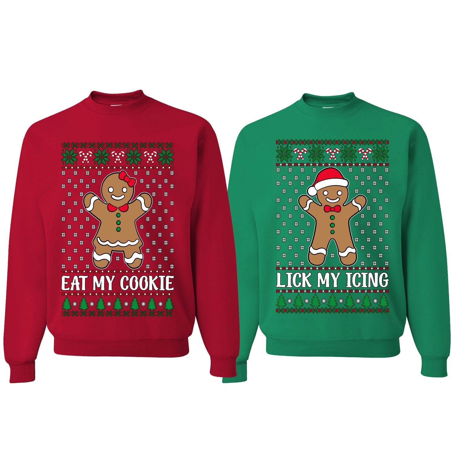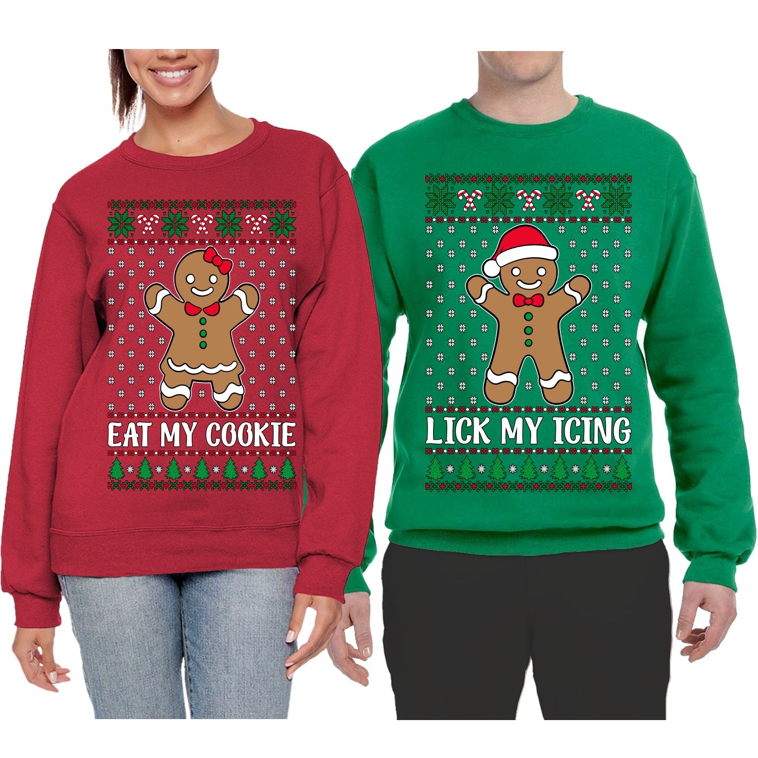 Eat My Cookie Lick My Icing Naughty Gingerbread Ugly Christmas Matching Couples Crewneck Sweater