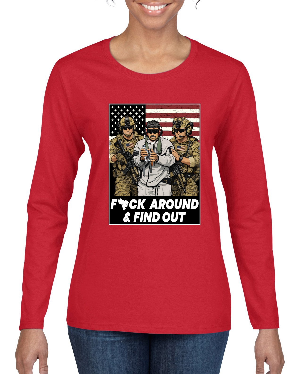 F Around & Find Out Venezuelan Dictator Maduro Captured Sweater, Womens Graphic Long Sleeve T-Shirt