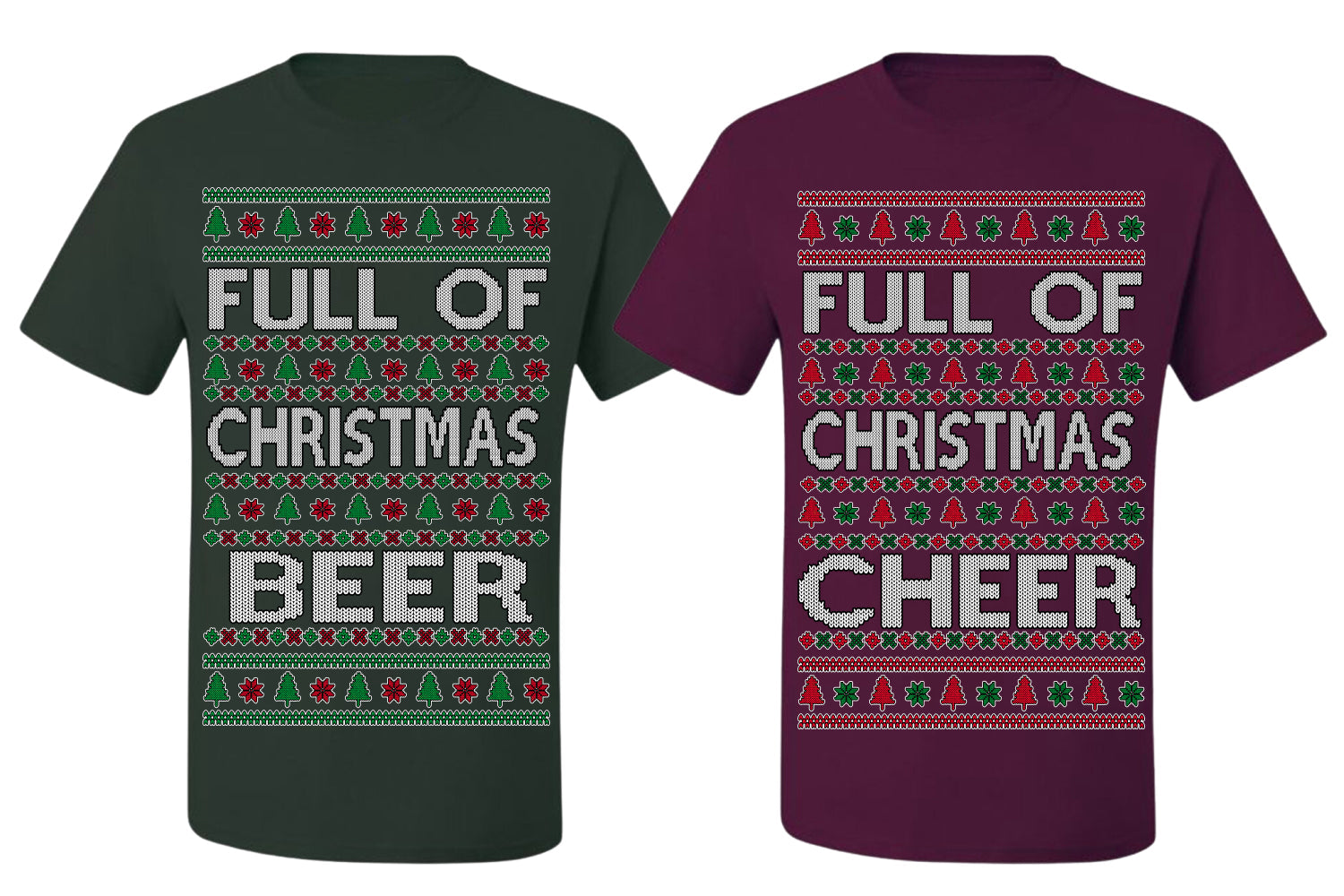 Full of Christmas Cheer Beer Husband Wife Couple Shirt Girlfriend Boyfriend Gift His and Hers Matching Ugly Christmas Couple T-Shirt