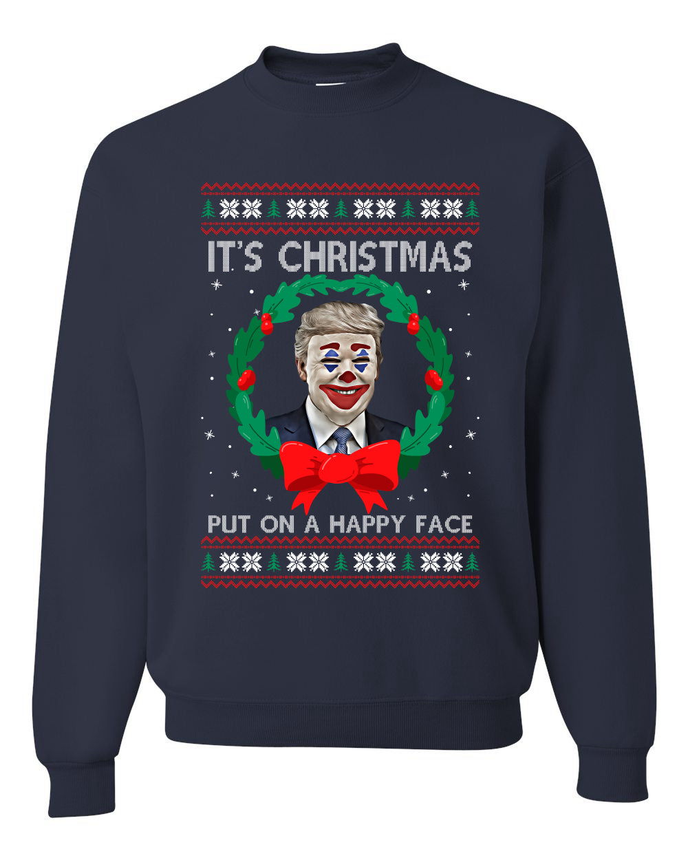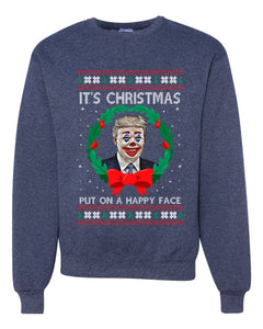 Funny Donald Trump Clown Joker Put On a Happy Face Xmas Wreath Christmas Unisex Crewneck Graphic Sweatshirt