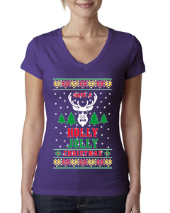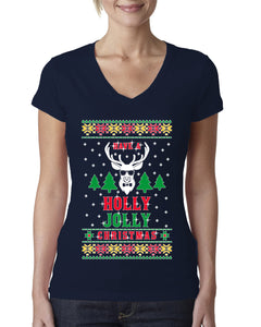 Have A Holly Jolly Christmas Ugly Christmas Sweater Womens Junior Fit V-Neck Tee
