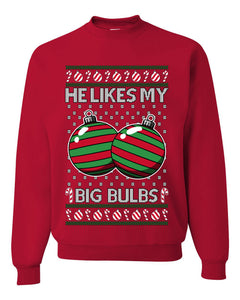 He Likes My Big Bulbs, Unisex Ugly Christmas Sweater, Crewneck Sweatshirts