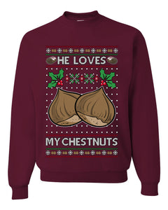 He Loves my Chestnuts, Unisex Ugly Christmas Sweater Crewneck Sweatshirts