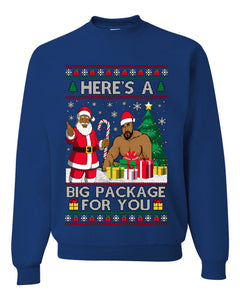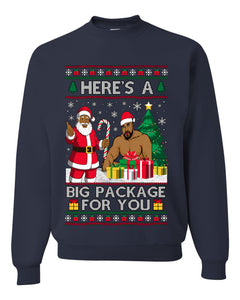 Here's A Big Package For You Black Santa Christmas Sweater, Unisex Ugly Christmas Crewneck Sweatshirts