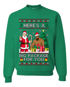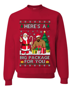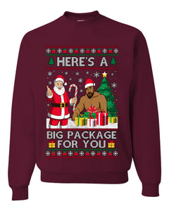 Here's A Big Package For You Santa Christmas Sweater, Unisex Ugly Christmas Crewneck Sweatshirts