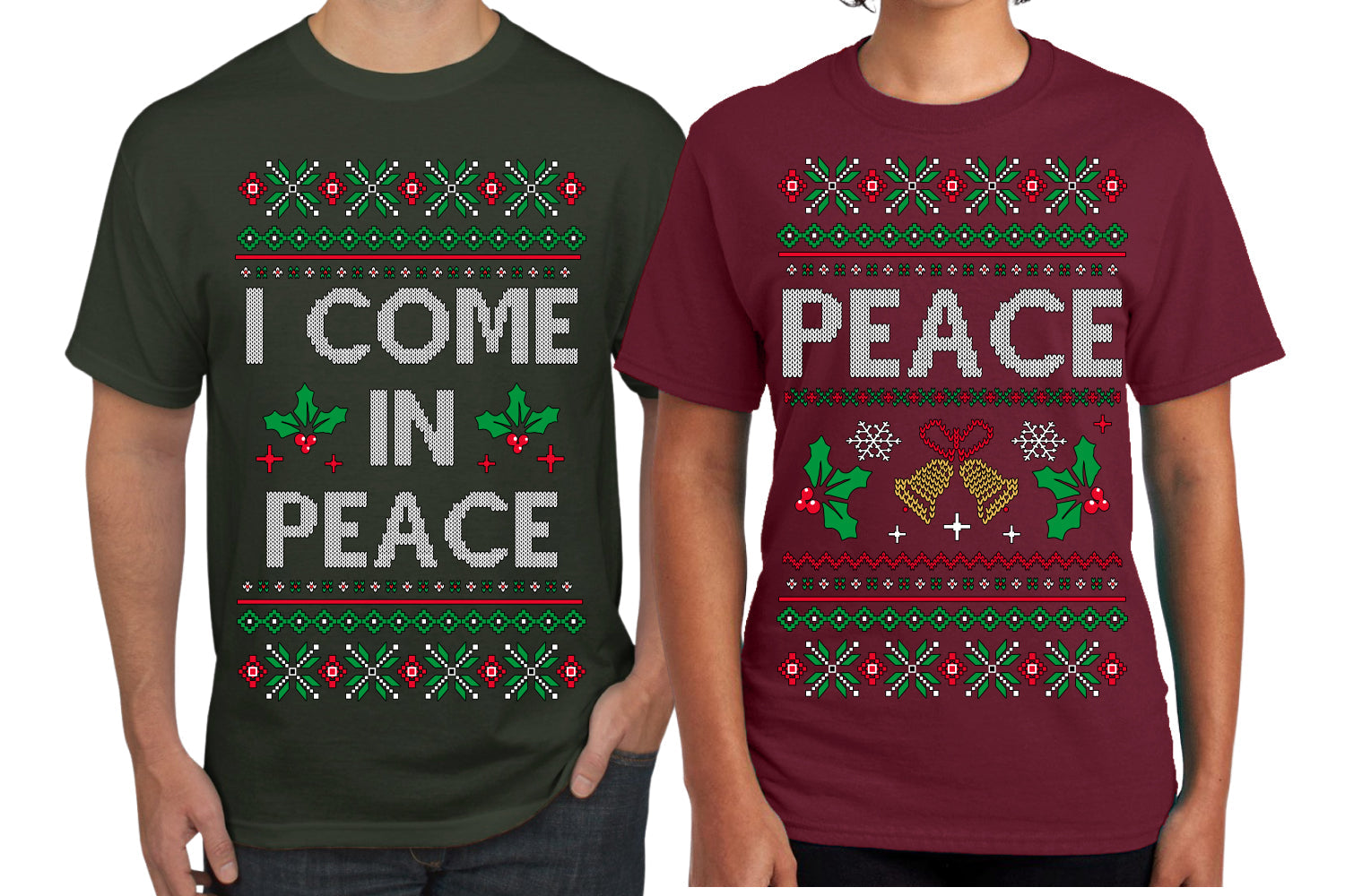 I Come in Peace Funny Matching His and Hers Couples Shirt Girlfriend Boyfriend Gift His and Hers Matching Ugly Christmas Couple T-Shirt