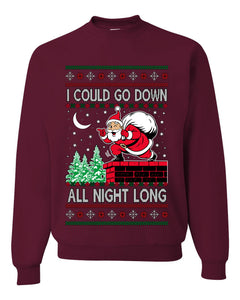 I Could Go Down All Night Long, Ugly Christmas Unisex Sweater, Crewneck Sweatshirts