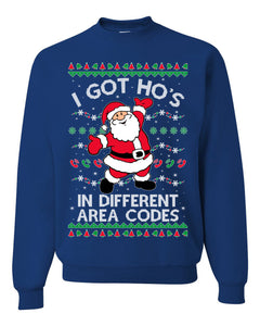 I Got Ho's in Different Area Codes Funny Santa Xmas Christmas Unisex Crewneck Graphic Sweatshirt