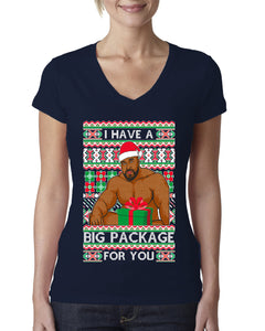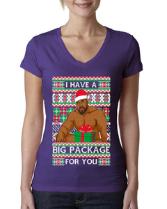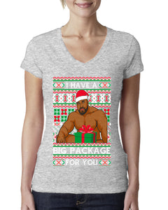 I have a Big package Meme Barry Wood Ugly Christmas Sweater Womens Junior Fit V-Neck Tee