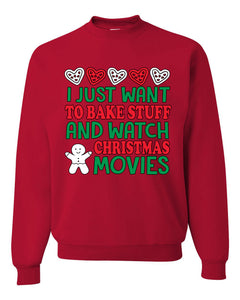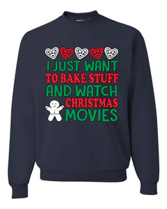 I Just want to Make Stuff and Watch Christmas Movies Ugly Christmas Sweater Christmas Unisex Crewneck Graphic Sweatshirt