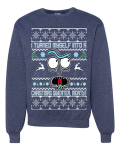 i turned myself into a christmas sweater morty Christmas Unisex Crewneck Graphic Sweatshirt