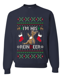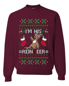 I'm His Reindeer, Unisex Ugly Christmas Sweater Crewneck Sweatshirts