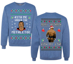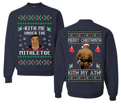 Kith Me Under The Mithletoe Funny Lisp Front and Back Unisex Ugly Christmas Sweater Crewneck Sweatshirt