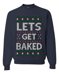 Let's Get Baked, Funny Stoner Christmas Unisex Sweater, Ugly Christmas Crewneck Sweatshirts