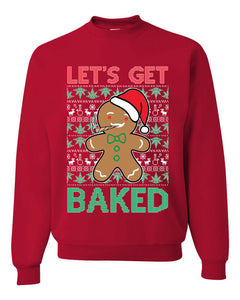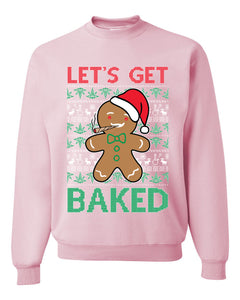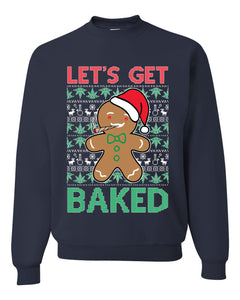 Lets get Baked Gingerbread Weed Stoner Ugly Christmas Sweater Christmas Unisex Crewneck Graphic Sweatshirt