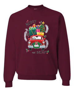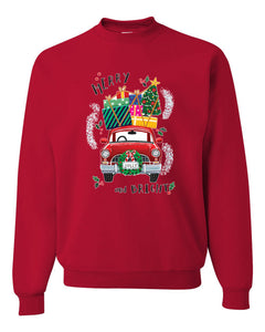 Merry and Bright Red Car Merry Christmas Unisex Crewneck Graphic Sweatshirt