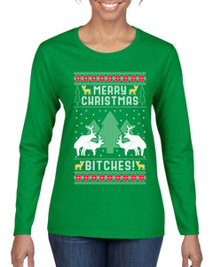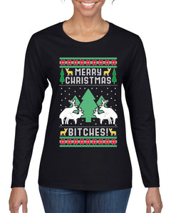 Merry Christmas Bitches Ugly Christmas Sweater Womens Graphic Long Sleeve T-Shirt
