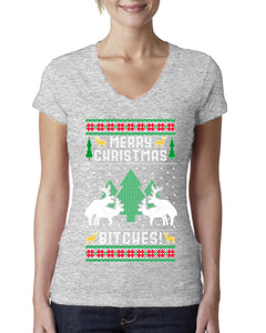 Merry Christmas Bitches Ugly Christmas Sweater Womens Junior Fit V-Neck Tee