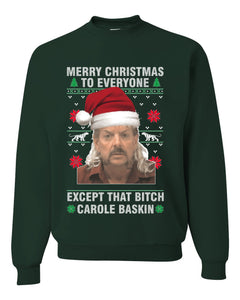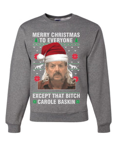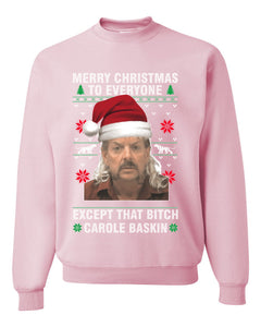 Merry Christmas to Everyone Except Carole Baskin Ugly Christmas Sweater Unisex Crewneck Graphic Sweatshirt