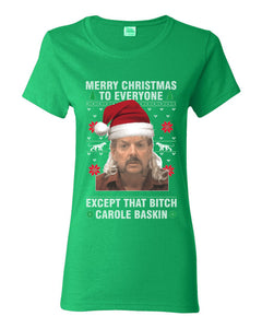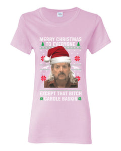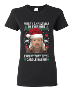 Merry Christmas to Everyone Except Carole Baskin Ugly Christmas Sweater Womens Graphic T-Shirt