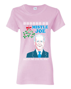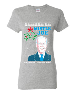 Mistle Joe Shut Up And Kiss Me Man Biden Ugly Christmas Sweater Womens Graphic T-Shirt