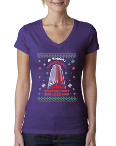 Nakatomi Plaza Christmas Party 1988 Ugly Christmas Sweater Womens Junior Fit V-Neck Tee