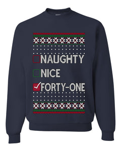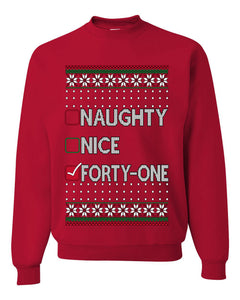 Naughty Nice 41, Simple List, Ugly Christmas Unisex Sweater, Funny Meme, Crewneck Sweatshirts