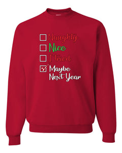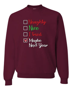 Naughty Nice I Tried Maybe Next Year Checklist Merry Christmas Unisex Crewneck Graphic Sweatshirt