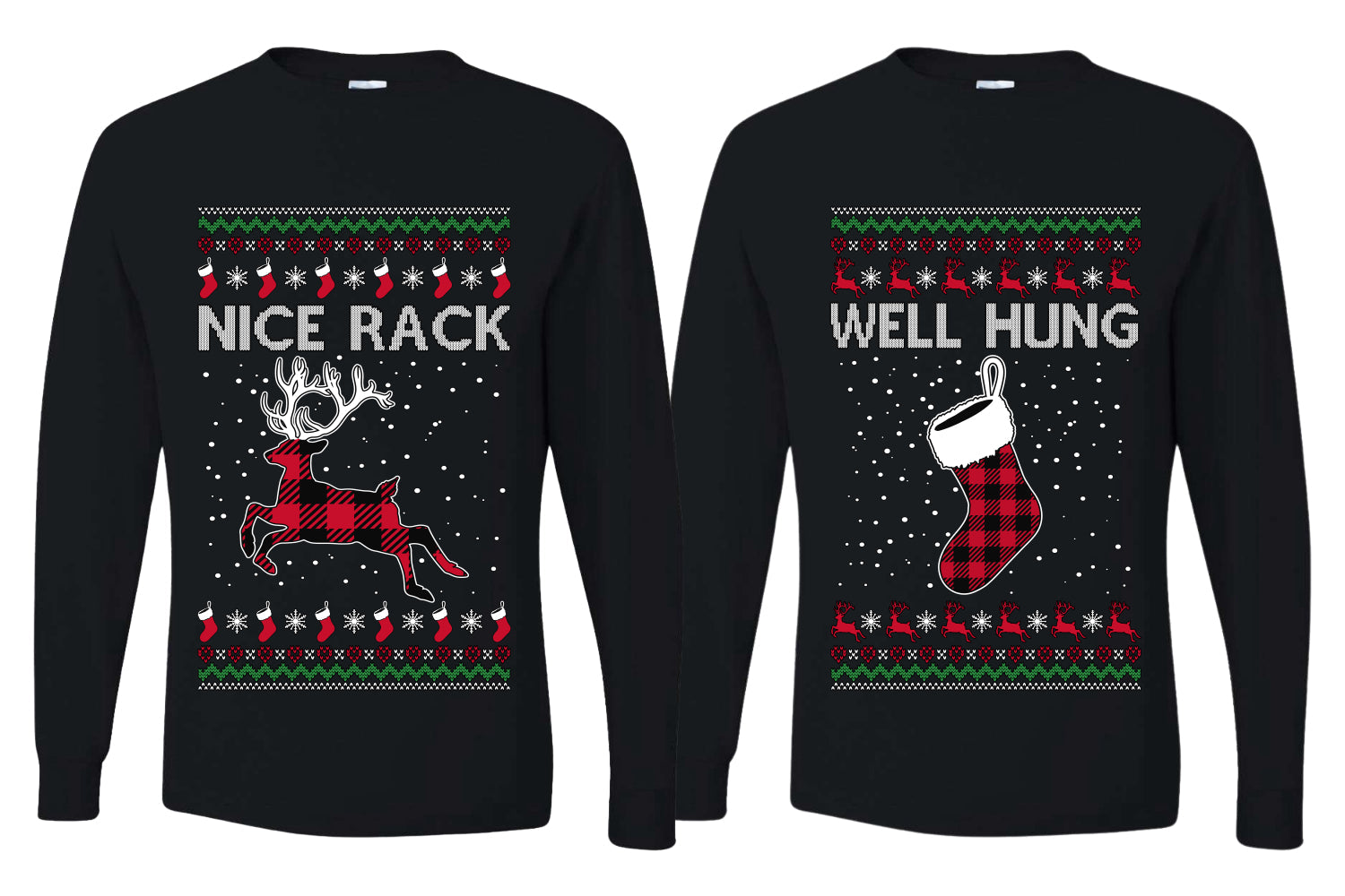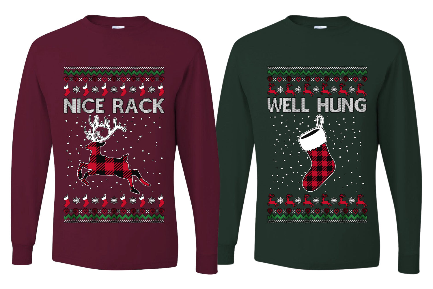 Nice Rack, Well Hung Sweater Girlfriend Boyfriend Gift His and Hers Matching Ugly Christmas Couple Long Sleeve Shirt