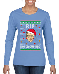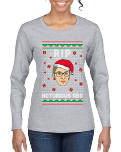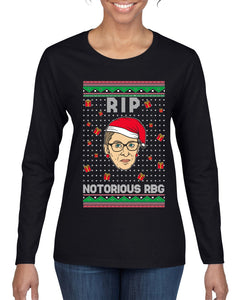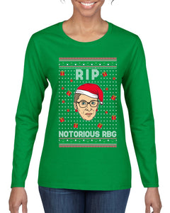 RIP Notorious RBG Ruth Bader Ginsburg Ugly Christmas Sweater Womens Graphic Long Sleeve T-Shirt