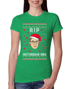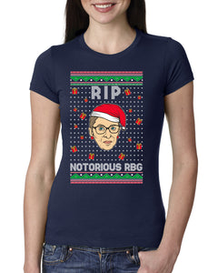 RIP Notorious RBG Ruth Bader Ginsburg Ugly Christmas Sweater Womens Slim Fit Junior Tee