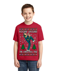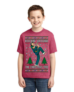 Rockin Around the Christmas Tree Raygun Viral Breakdancer Ugly Christmas Unisex Boys Girls Graphic Youth T-shirt