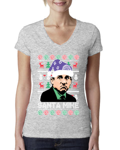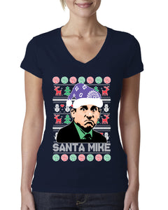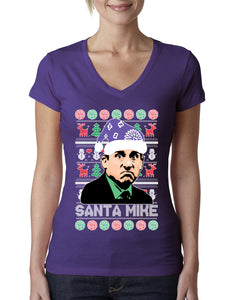 Santa Mike Michael Scott The Office Ugly Christmas Sweater Womens Junior Fit V-Neck Tee