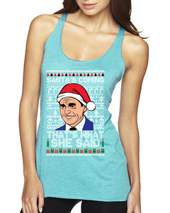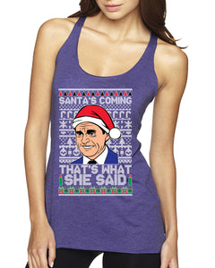 Santas Coming That's What She Said Michael Scott Ugly Christmas Sweater Tri-Blend Racerback Tank Top