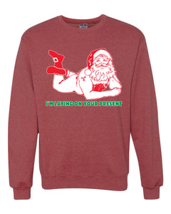 Sexy Santa Im Laying on your Present Ugly Christmas Christmas Unisex Crewneck Graphic Sweatshirt