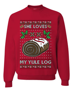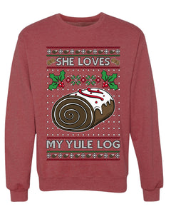 She Loves my Yule Log, Unisex Ugly Christmas Sweater Crewneck Sweatshirts