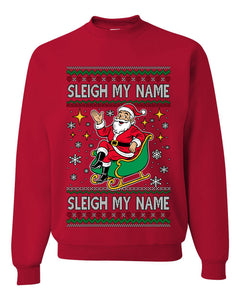 Sleigh My Name Sleigh My Name, Pop Singers, Song Lyrics Pun, Santa Sleigh, Ugly Christmas Unisex Sweater, Crewneck Sweatshirts