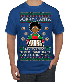Sorry Santa Dad Never Came Back With Milk, Other Kid, Funny Viral Daddy Left Sad Kid Meme Ugly Christmas Sweater Men's T-Shirt