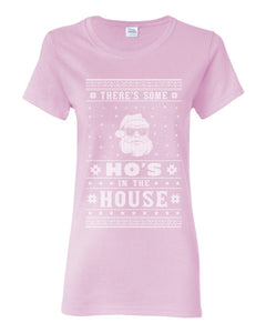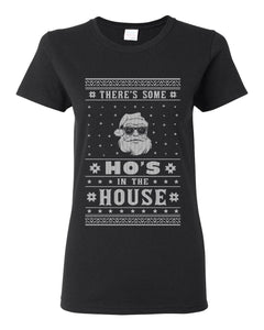 Theres Some Hos in the House Santa Ugly Christmas Sweater Womens Graphic T-Shirt